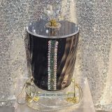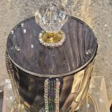 Sandra, the glass purse artist, creates exquisite purses using high-quality materials that must be specially ordered for each piece. Once the materials arrive, Sandra meticulously drills into the thick, durable glass to create precise holes for attaching the chic chain strap. She also works with acrylic lids, carefully drilling into them to secure the sturdy hinge that allows for smooth opening and closing. Each purse is then adorned with a dazzling array of decorations, including rhinestones, crystals, and drawer pulls, along with other unique embellishments! Sandra’s attention to detail and dedication to using the finest materials results in stunning, one-of-a-kind glass purses that are as functional as they are beautiful!